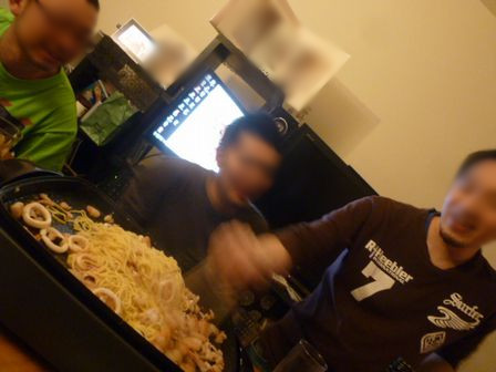 やきそばにお好み焼きにヘッドロック。。野郎会という言葉がぴったり(笑)