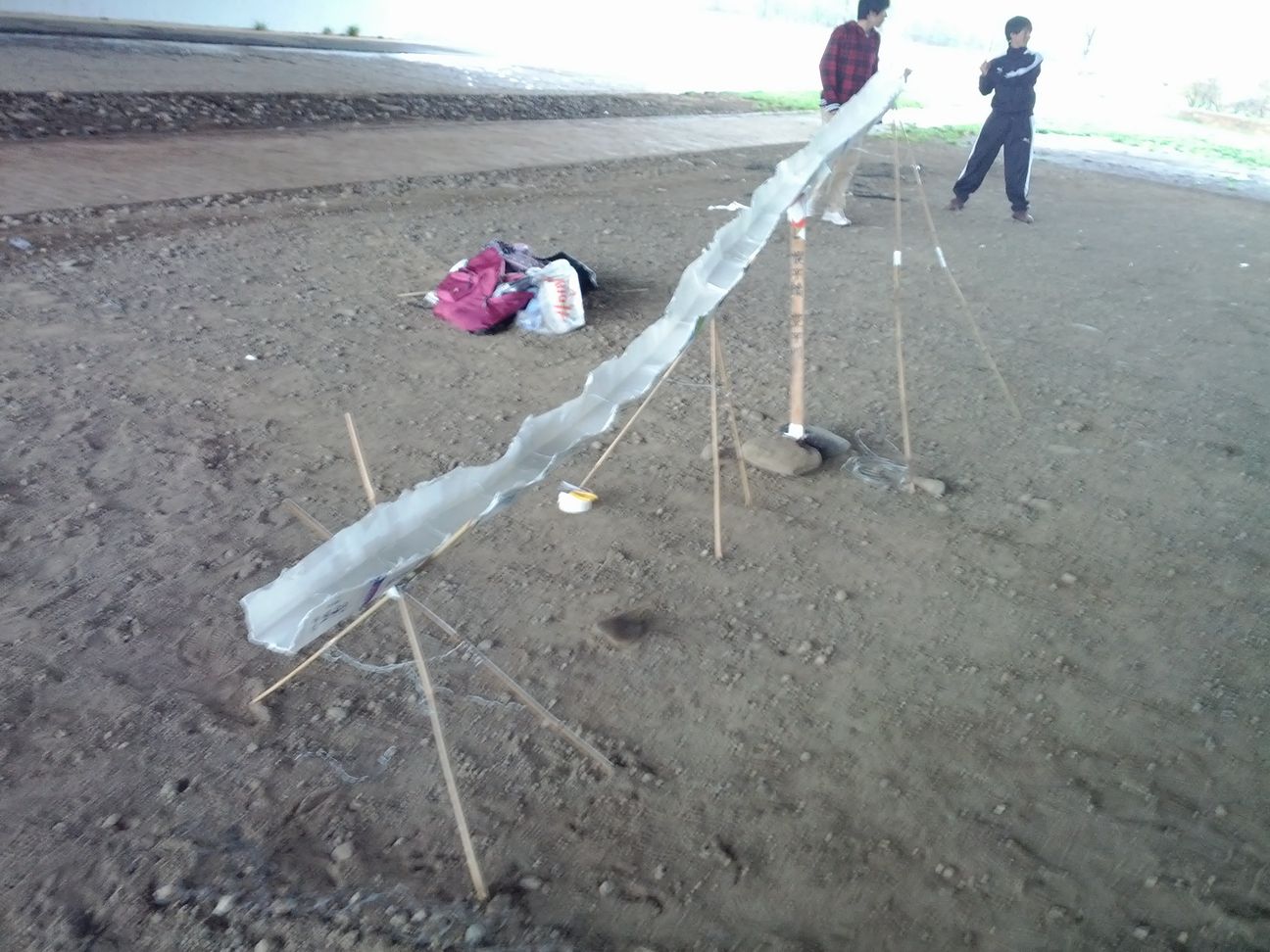 牛乳パックをつなげて見事な流しそうめん装置(!?)を作っ