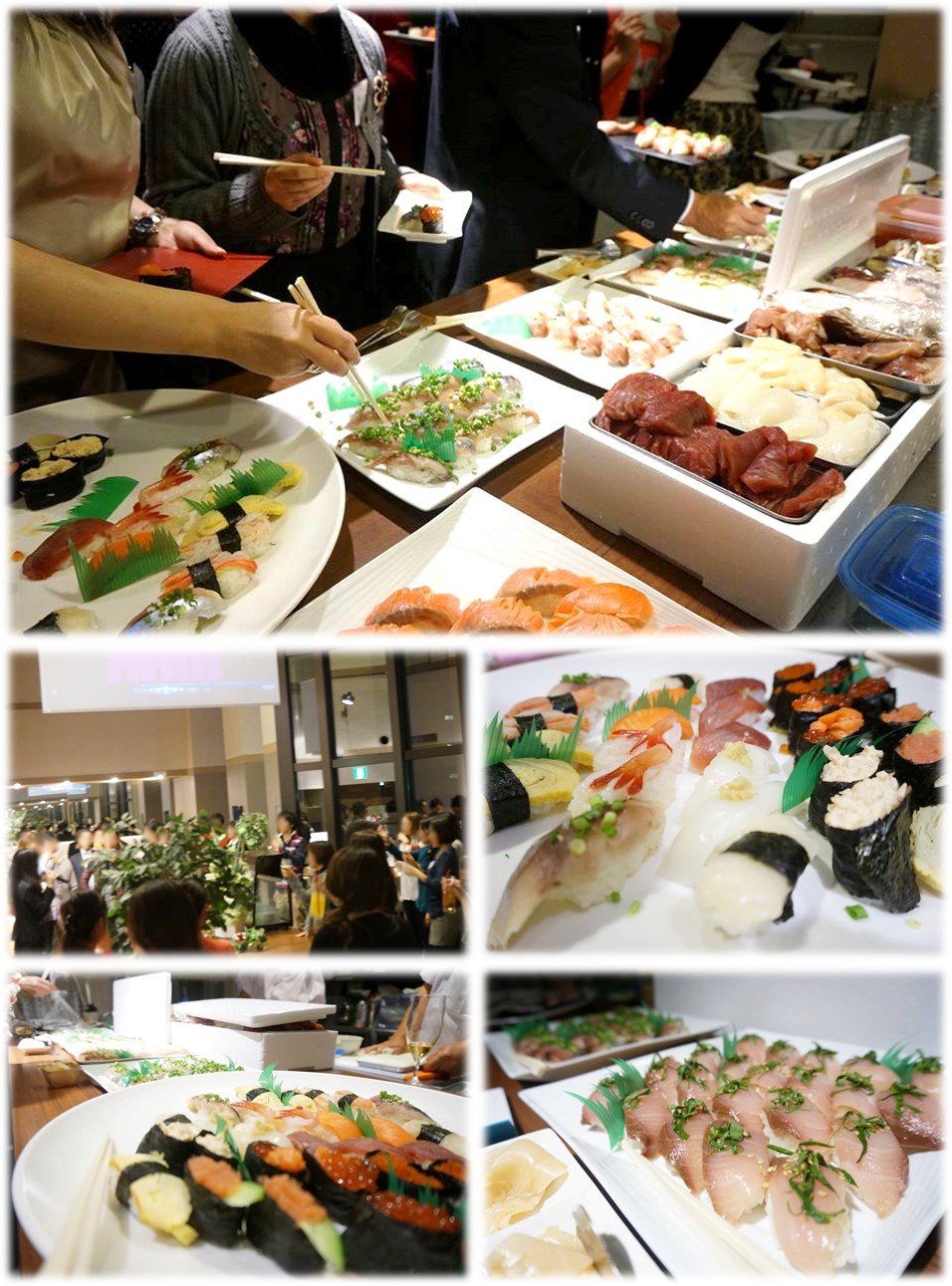 それまでの前半は、フリードリンク & あらかじめご用意させていただくおつまみ等の軽食で、お寿司を楽しみにしながら交流をお楽しみ下さい^^
