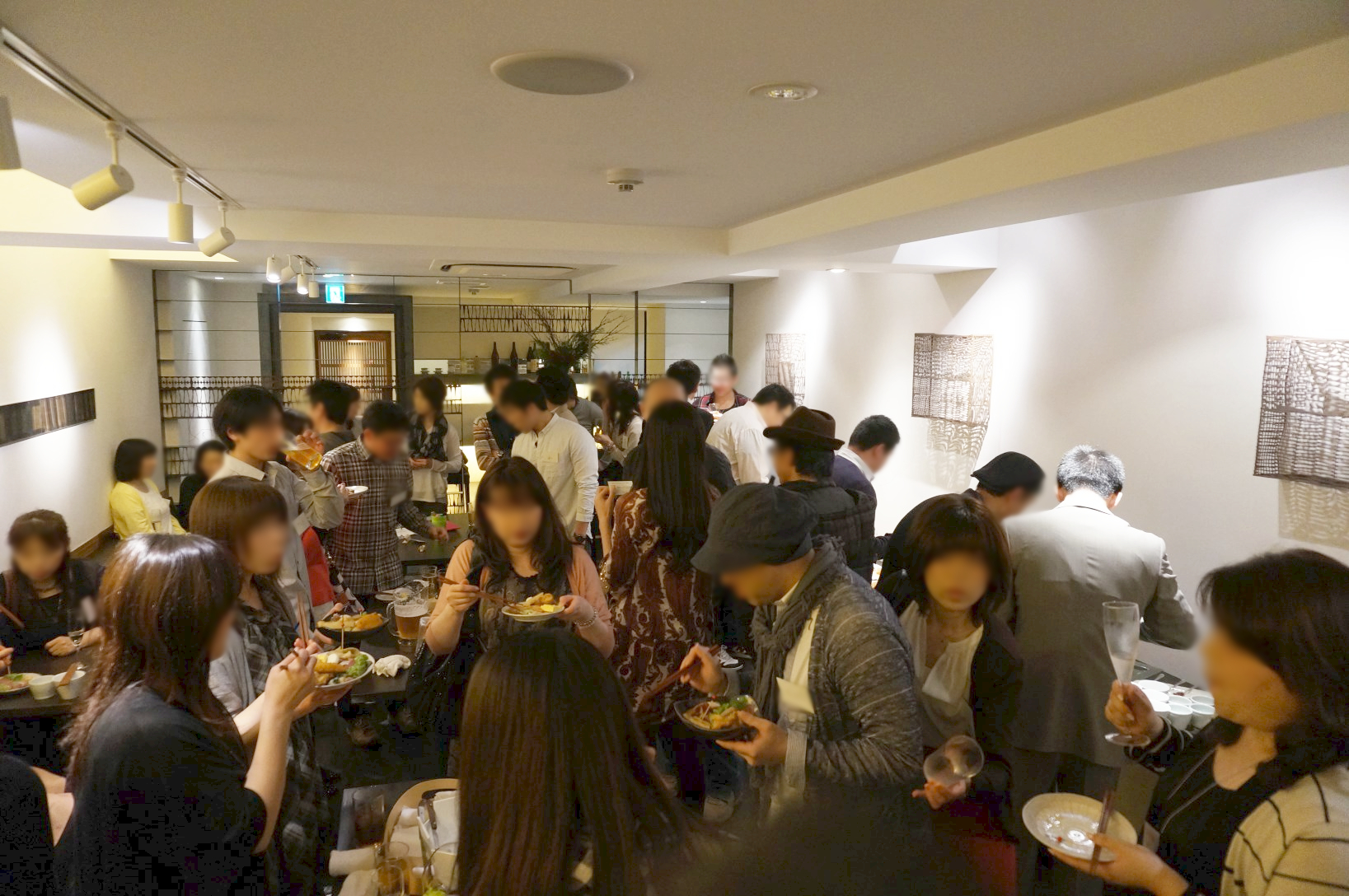 あえて各テーブルに1品のみを置いて、いろいろなテーブルを移動しながら参加者全体で交流できるように致します。